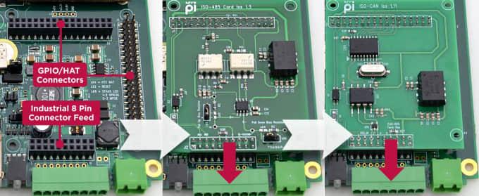 像上面展示的,这家公司为 MyPi 提供了一系列可靠的 ASIO 插卡,。一开始这些会包括 CAN 总线,4-20mA 传感器信号,RS485,窄带 RF,等等。