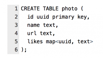 我们能猜到你现在在想什么,“但我只有关系数据库相关背景,难道这样的转变不会很困难吗?”这问题的答案介于是和不是之间。使用 Cassandra 建立数据模型对有关系数据库背景的开发者而言是轻车熟路。我们使用表格来建立数据模型,并使用 CQL ( Cassandra 查询语言)来查询数据库。然而,与 SQL 不同的是,Cassandra 支持更加复杂的数据结构,例如嵌套和用户自定义类型。举个例子,当要储存对一个小猫照片的点赞数目时,我们可以将整个数据储存在一个包含照片本身的集合之中从而获得更快的顺序查找而不是建立一个独立的表。这样的表述在 CQL 中十分的自然。在我们照片表中,我们需要记录名字,URL以及给此照片点赞过的人。
