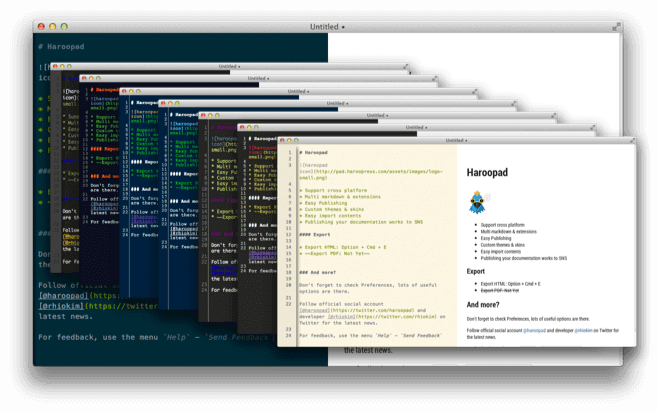 Haroopad 是为 Linux,Windows 和 Mac OS X 构建的跨平台 Markdown 文档处理程序。用户可以用它来书写许多专家级格式的文档,包括电子邮件、报告、博客、演示文稿和博客文章等等。