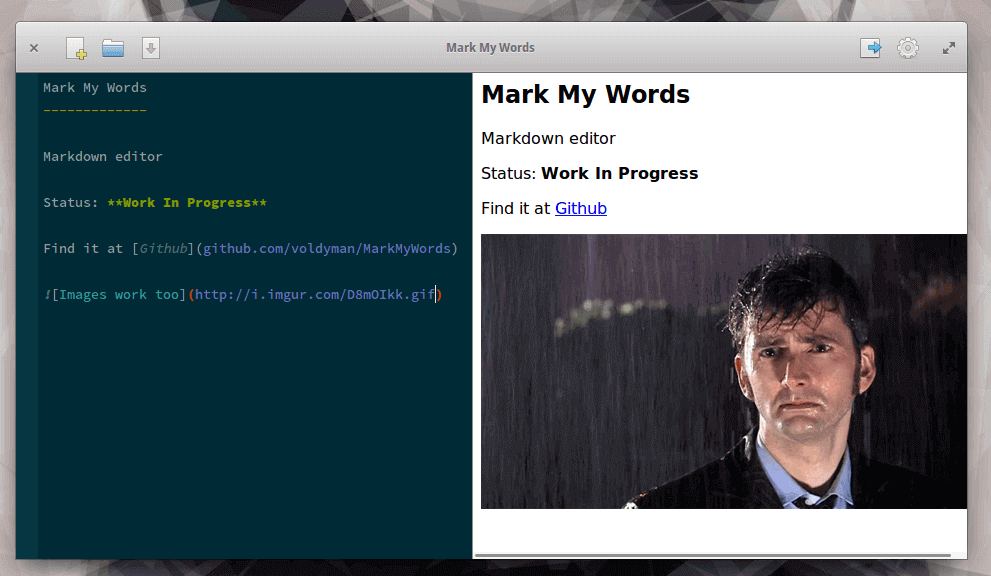 Mark My Words 同样也是一个轻量、强大的 Markdown 编辑器。它是一个相对比较新的编辑器,因此提供了包含语法高亮在内的大量的功能,简单和直观的 UI。