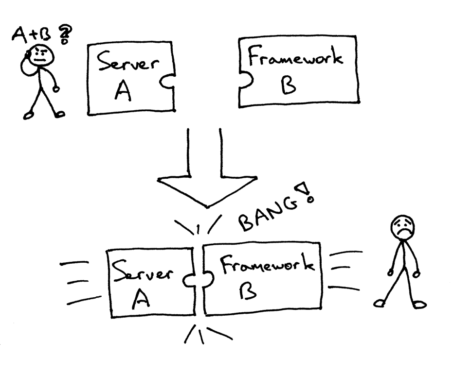 但你可能正面对着(或者曾经面对过)尝试将一对无法适配的框架和服务器搭配在一起的问题: