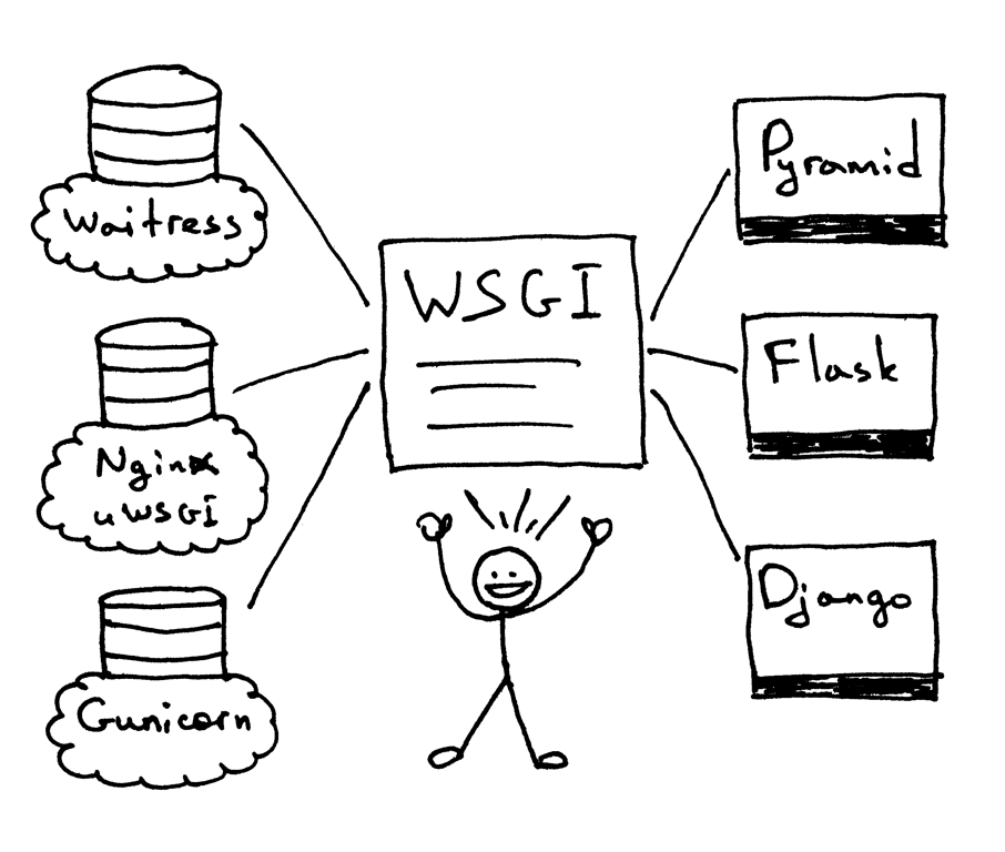 所以,你该如何确保在不对 Web 服务器或框架的代码做任何更改的情况下,让你的 Web 服务器和多个不同的 Web 框架一同工作呢?这个问题的答案,就是 Python Web 服务器网关接口 (缩写为 WSGI,念做“wizgy”)。