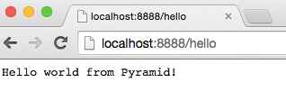 你刚刚让你的服务器去加载 Python 模块 pyramidapp 中的可执行对象 app。现在你的服务器可以接收请求,并将它们转发到你的 Pyramid 应用中了。在浏览器中输入 http://localhost:8888/hello ,敲一下回车,然后看看结果: