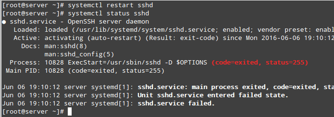 在尝试重启服务并检查它的状态之后,我们会看到它启动失败: