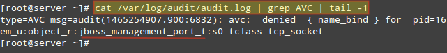 # cat /var/log/audit/audit.log | grep AVC | tail -1