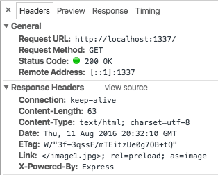 var http = require('http'); var netjet = require('netjet'); var port = 1337; var hostname = 'localhost'; var preload = netjet({ cache: { max: 100 } }); var server = http.createServer(function (req, res) { preload(req, res, function () { res.statusCode = 200; res.setHeader('Content-Type', 'text/html'); res.end('<!doctype html><h1>Hello World</h1>'); }); }); server.listen(port, hostname, function () { console.log('Server running at http://' + hostname + ':' + port+ '/'); });