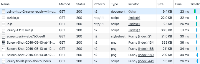 本博客是使用 Ghost(LCTT 译注:一个博客发布平台)进行发布的,因此如果你的浏览器支持 HTTP/2,你已经在不知不觉中享受了服务端推送技术带来的好处了。接下来,我们将进行更详细的说明。