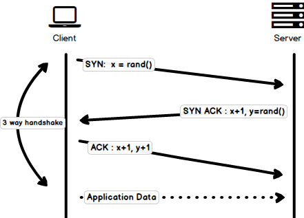 SYN- 客户端选取一个随机数,我们称为x,然后发送给服务器。 -