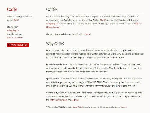 它是由贾扬清在加州大学伯克利分校的读博时创造的,Caffe 是一个基于表达体系结构和可扩展代码的深度学习框架。使它声名鹊起的是它的速度,这让它受到研究人员和企业用户的欢迎。根据其网站所言,它可以在一天之内只用一个 NVIDIA K40 GPU 处理 6000 万多个图像。它是由伯克利视野和学习中心(BVLC)管理的,并且由 NVIDIA 和亚马逊等公司资助来支持它的发展。