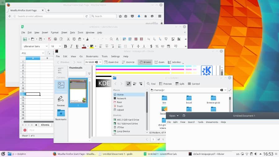 Plasma 的默认 Breeze 主题将各种可视组件的外观打造为一致的风格,这包括用 Qt 4、Qt 5、GTK 2、GTK 3 等等开发的应用,甚至还包括 LibreOffice。
