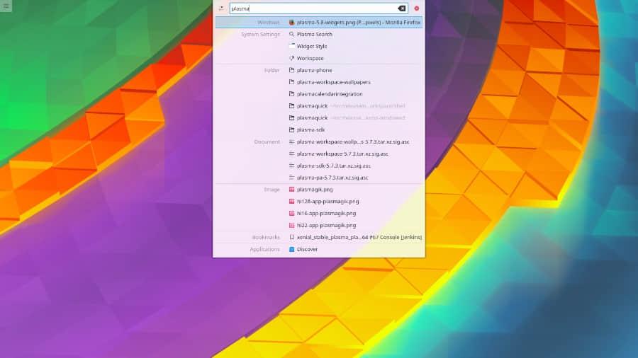 Plasma 可以让你在桌面上搜索应用、文件夹、音乐、视频、文件等等你任何想找的东西。