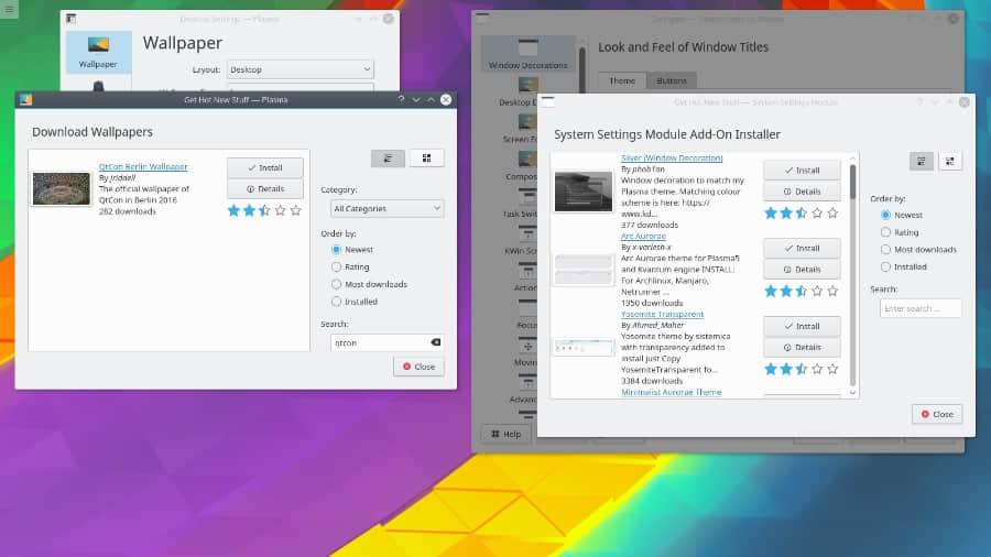 用下载的墙纸、窗口风格、小工具、桌面效果和大量的其它装饰素材打扮你的桌面。我们提供了一个 KDE 商店,可供你在海量的素材中进行选择。