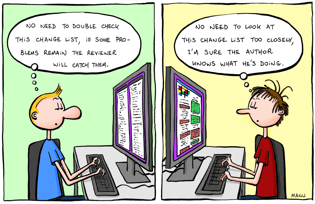 理由之一就是,大多数开发者实际上只是编写代码,而读代码并不多。这本是没有什么错,但却说明了并非每个人都是代码审核人员,所以我们真的应该鼓励每个人都进行代码审核。
