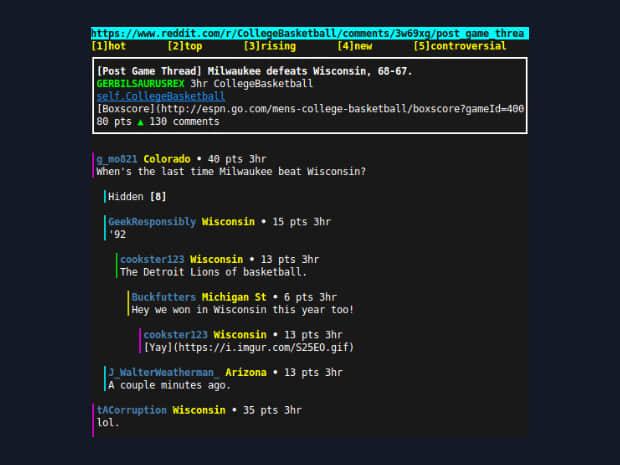 不管如何,在命令行中享受 Reddit 新闻时间真的感觉很棒。使用 rtv 真是一个相当愉快的体验。不管是阅读、评论,还是投票表决,它都可以。其体验和在网页版有一定相似。