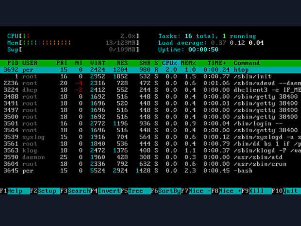 可以使用 htop。与 top 相似,但更好用、更美观。有时候,我打开 htop 之后就让它一直运行。没有原因,就是喜欢!从某方面说,它就像将音乐可视化——当然,这里显示的是 RAM 和 CPU 的使用情况。