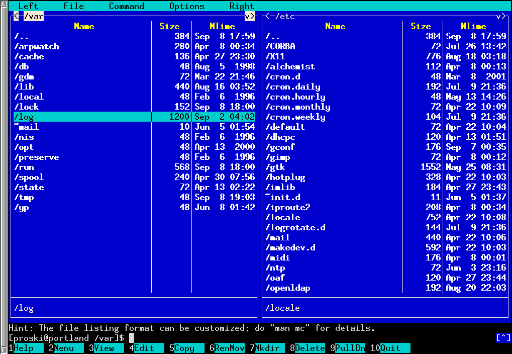 在一个纯文本终端里并不意味着你不能享受生活之美好。比方说一个出色的文件浏览和管理器。这方面,Midnight Commander 是很好用的。