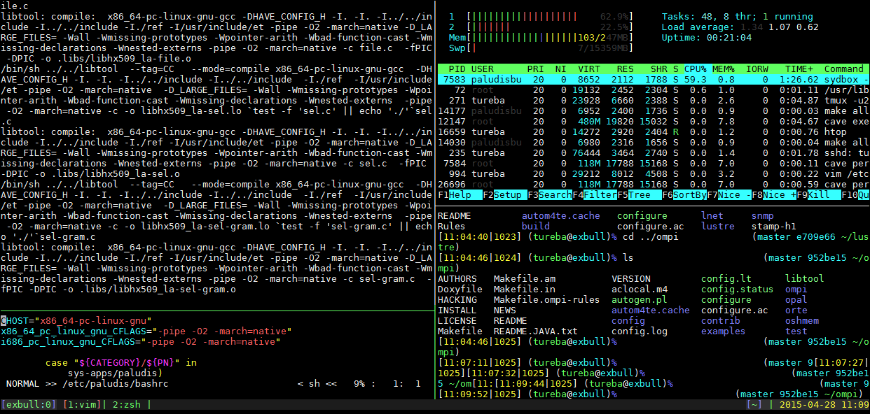 如果要在终端里工作很长时间,就需要一个多窗口终端了。它是这样一个软件 —— 可以将用户终端会话分割成一个自定义网格,从而可以同时使用和查看多个终端应用。对于 shell,它相当于一个平铺式窗口管理器。我最喜欢用的是 tmux。不过 GNU Screen 也很好用。学习怎么使用它们可能要花点时间,但一旦会用,就会很方便。