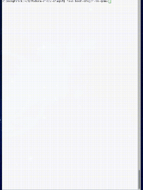 在其背后也有进展。在软件方面,人们正在将程序移植到 RISC-V 上,让它启动起来。Fedora 已经移植了成千上万的程序 - 下面是 Fedora/RISC-V 在 QEMU 中启动: