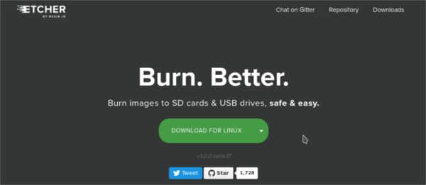 制作启动 U 盘需要一个烧录程序,可以到 etcher.io 去下载。下载好之后解压 zip 文件,右击 (或者使用鼠标选定之后按下回车) 解压出来的文件以运行。