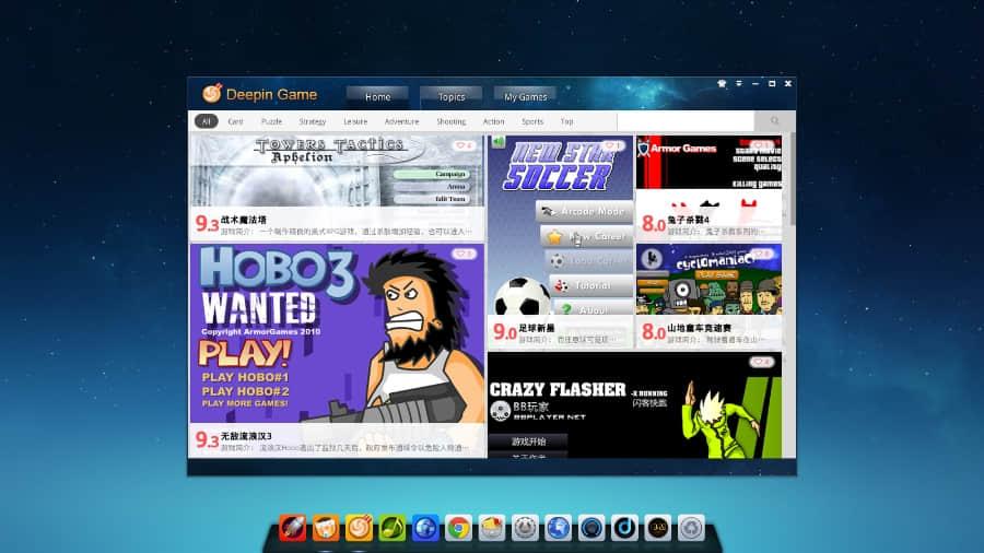 另一个亮点是 Deepin 的游戏。它提供许多免费的可联网玩耍的游戏,它们非常的有意思可以很好的用于消磨时光。