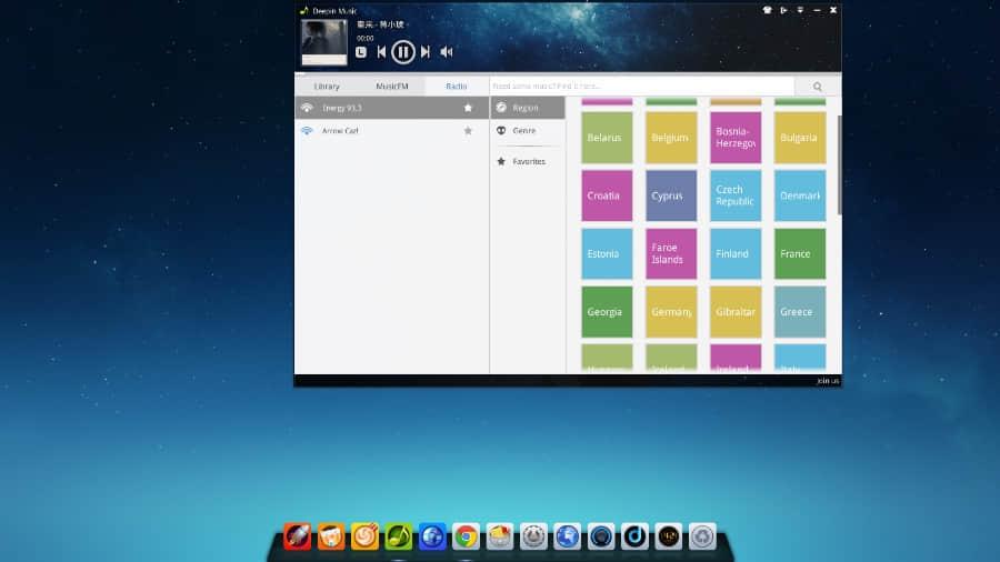 Deepin 也提供一个好用的音乐播放软件,它有着网络电台点播功能。如果你本地没有音乐你也不用害怕,你可以调到网络电台模式来享受音乐。