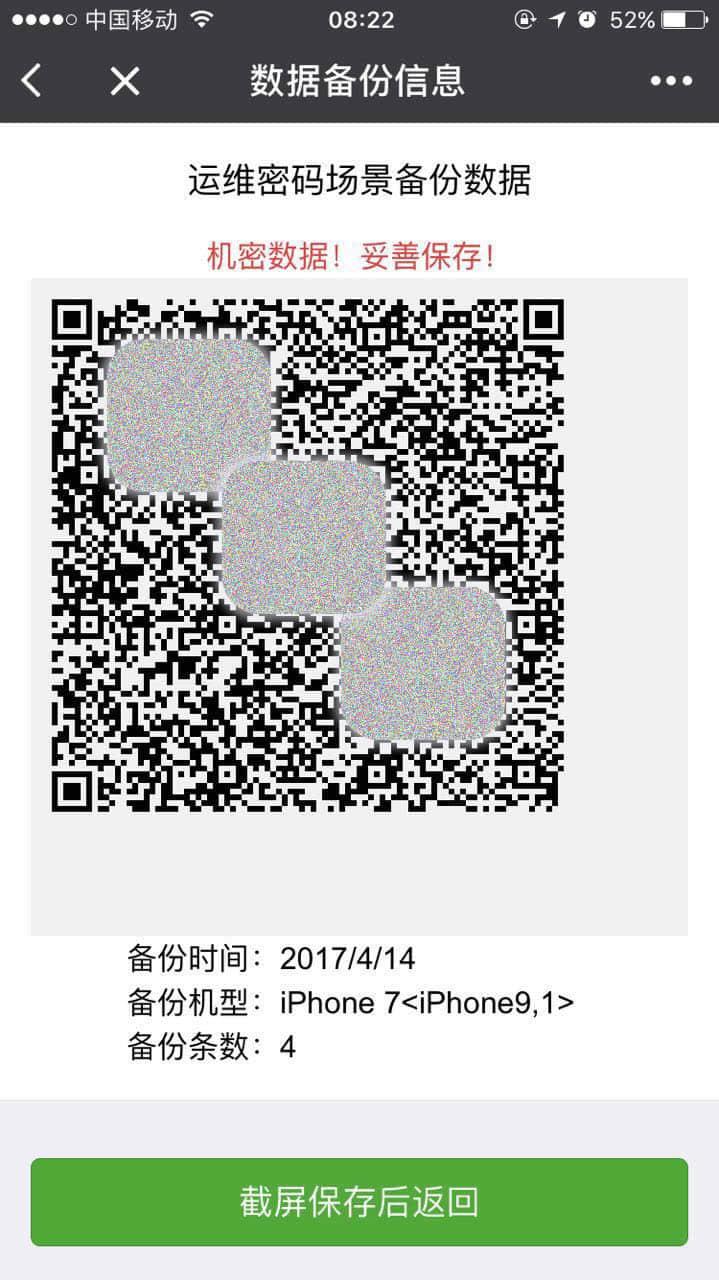 场景备份信息,请截屏安全保存