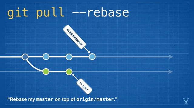 这有点混乱,而且在繁忙的团队,你会获得成堆的不必要的合并提交。git pull --rebase 将你本地的提交在你队友的提交上执行变基而不产生一个合并提交。