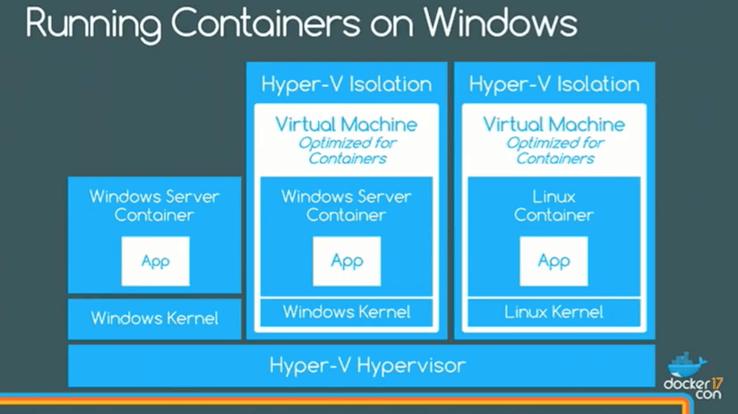 如今,Windows 开发者也可以在 Windows 基于 Hyper-V 的内核原生地运行 Linux 内核容器。
