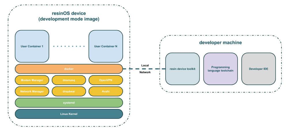 与基于 Linux 的 CoreOS 一样,ResinOS 集成了 systemd 控制服务和网络协议栈,可通过异构网络安全地部署更新的应用程序。 但是,它是为在资源受限的设备(如 ARM 黑客板)上运行而设计的,与之相反,CoreOS 和其他基于 Docker 的操作系统(例如基于 Red Hat 的 Project Atomic)目前仅能运行在 x86 上,并且更喜欢资源丰富的服务器平台。 ResinOS 可以在 20 中 Linux 设备上运行,并不断增长,包括 Raspberry Pi,BeagleBone 和Odroid-C1 等。
