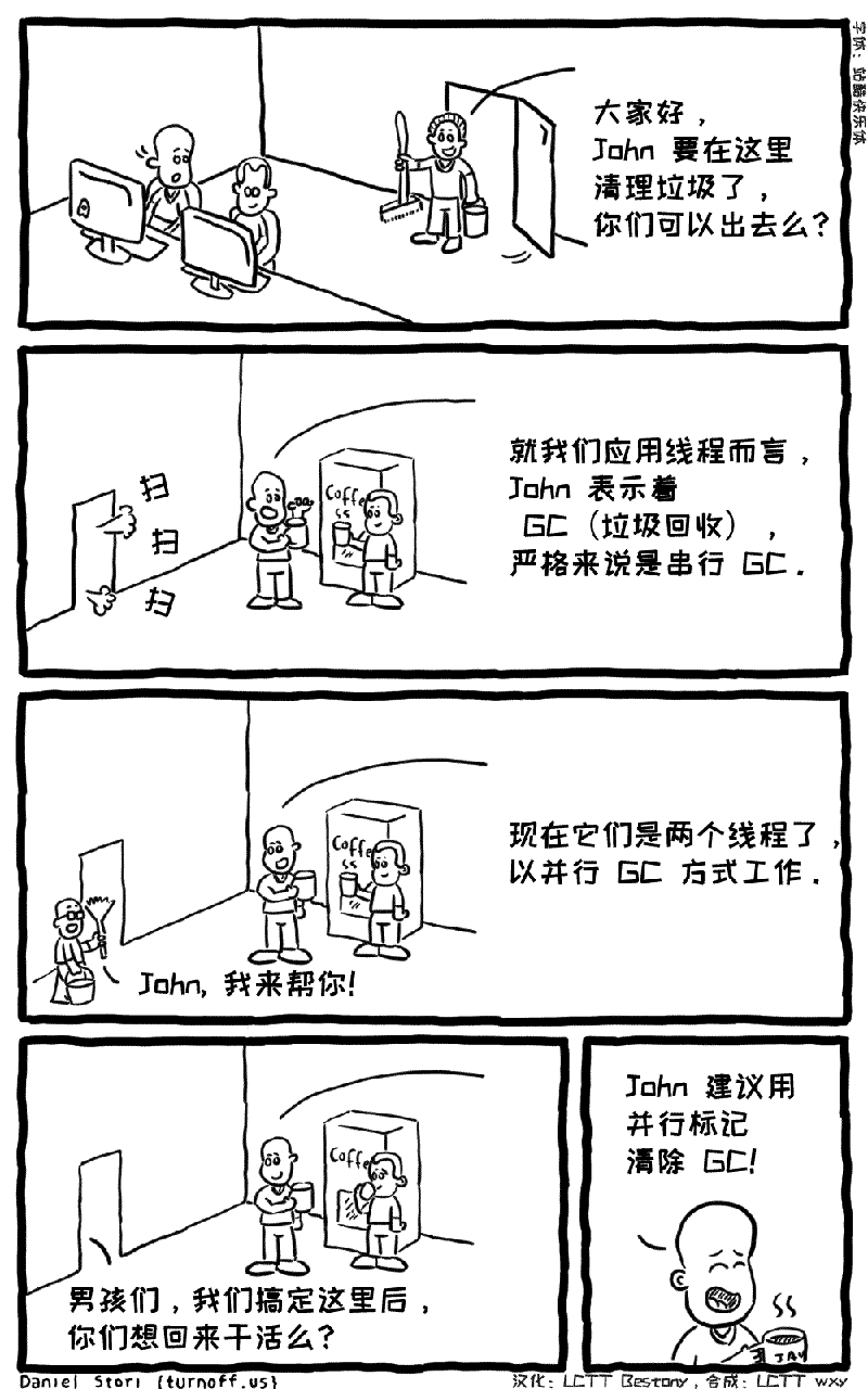 这篇漫画生动的解释了 Java 的垃圾回收机制:什么是垃圾回收(GC)、什么是并行垃圾回收以及什么是垃圾回收的标记清除算法。