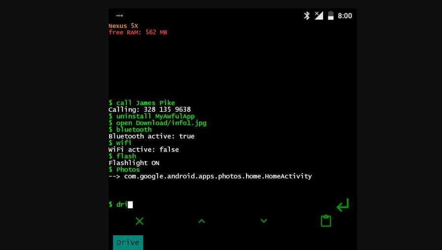$ uninstall telegram ### 卸载 telegram $ search [google, playstore, youtube, files] ### 搜索在线应用或本地文件 $ wifi ### 打开或关闭 WIFI $ cp Downloads/* Music ### 从 Download 文件夹复制所有文件到 Music 文件夹 $ mv Downloads/* Music ### 从 Download 文件夹移动所有文件到 Music 文件夹