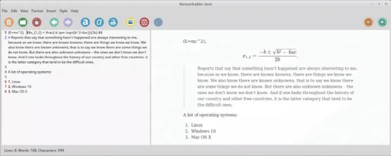 让我们从 Remarkable 开始。Remarkable 是一个 apt 软件包的名字,它是一个相当有特色的 Markdown 编辑器 — 它并不支持 Markdown 的全部功能特性,但该有的功能特性都有。它使用和 GitHub Markdown 类似的语法。