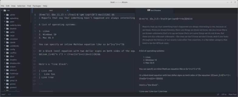 但是,开源拥有强大的力量,这是我强烈提倡开源的一个重要原因。Atom 上有许多包以及一些复刻,从而添加了缺失的功能特性。比如,Markdown Preview Plus 提供了 Markdown 文件的实时预览,并伴有数学公式渲染和实时重加载。另外,你也可以尝试一下 Markdown Preview Enhanced。如果你需要自动滚动特性,那么 markdown-scroll-sync 可以满足你的需求。我是 Markdown-Writer和 Markdown-pdf的忠实拥趸,后者支持将 Markdown 快速转换为 PDF、PNG 以及 JPEG 文件。