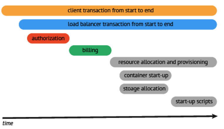 如果你想进一步深挖 Golang 的追踪能力,这里还有一些库提供了追踪功能,例如 Opentracing。这个库提供了一种简单的方式在或复杂或简单的架构中添加追踪的实现。它通过不同步骤允许你追踪用户的查询,就像下面这样: