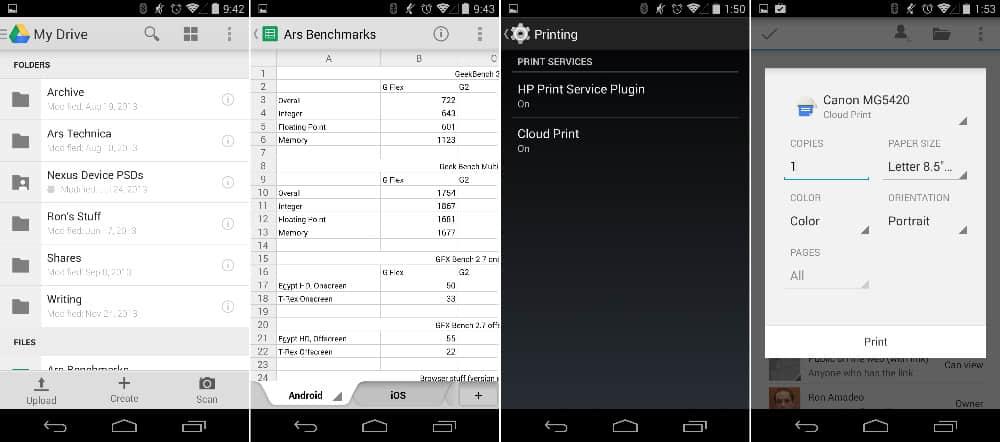 Office 相关:新的内置应用 Google Drive,以及打印支持。 [Ron Amadeo 供图]