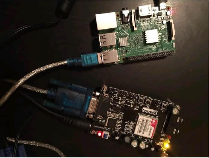 第一步是检查 SIM900 开发板是否连接到树莓派上。