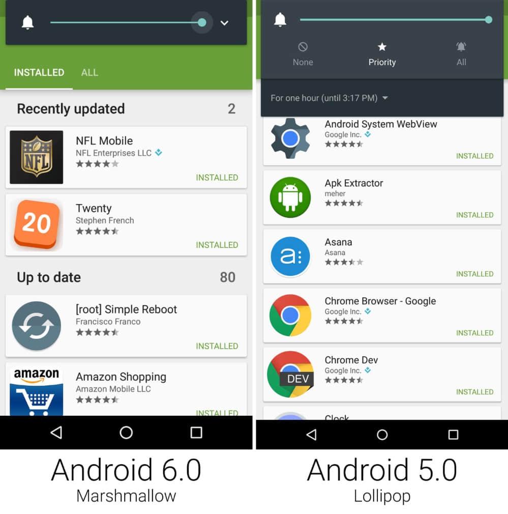 但是,在棒棒糖中,这项特性引入的时候,谷歌糟糕地让开发者来决定他们的应用是否“重要”。毫无疑问,所有开发者都认为他的应用是世界上最重要的东西。所以尽管最初这项特性是为你亲密联系人的即时消息设计的,最后变成了被 Facebook 的点赞通知所操控。在棉花糖中,每个应用在通知设置都有一个“设置为优先”复选框,给了用户一把大锤来收拾不守规矩的应用。