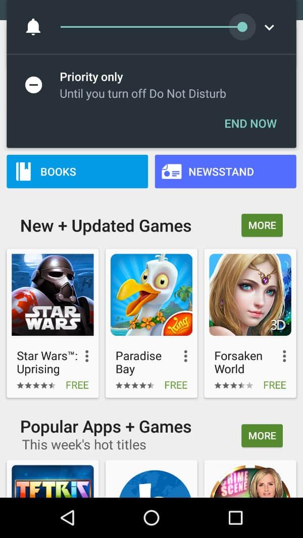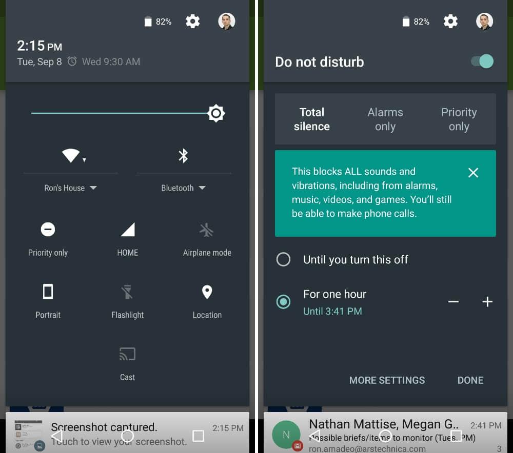 为了更简洁的设计,谷歌将通知优先级控制从音量弹窗中移除了。按下音量键会弹出一个单独的滑动条,对应当前音源控制,还有一个下拉按钮可以展开控制面板,显示所有的三个声音控制条:通知,媒体和闹钟。所有的通知优先级控制还在——它们现在在一个“勿扰模式”的快速设置方块中。