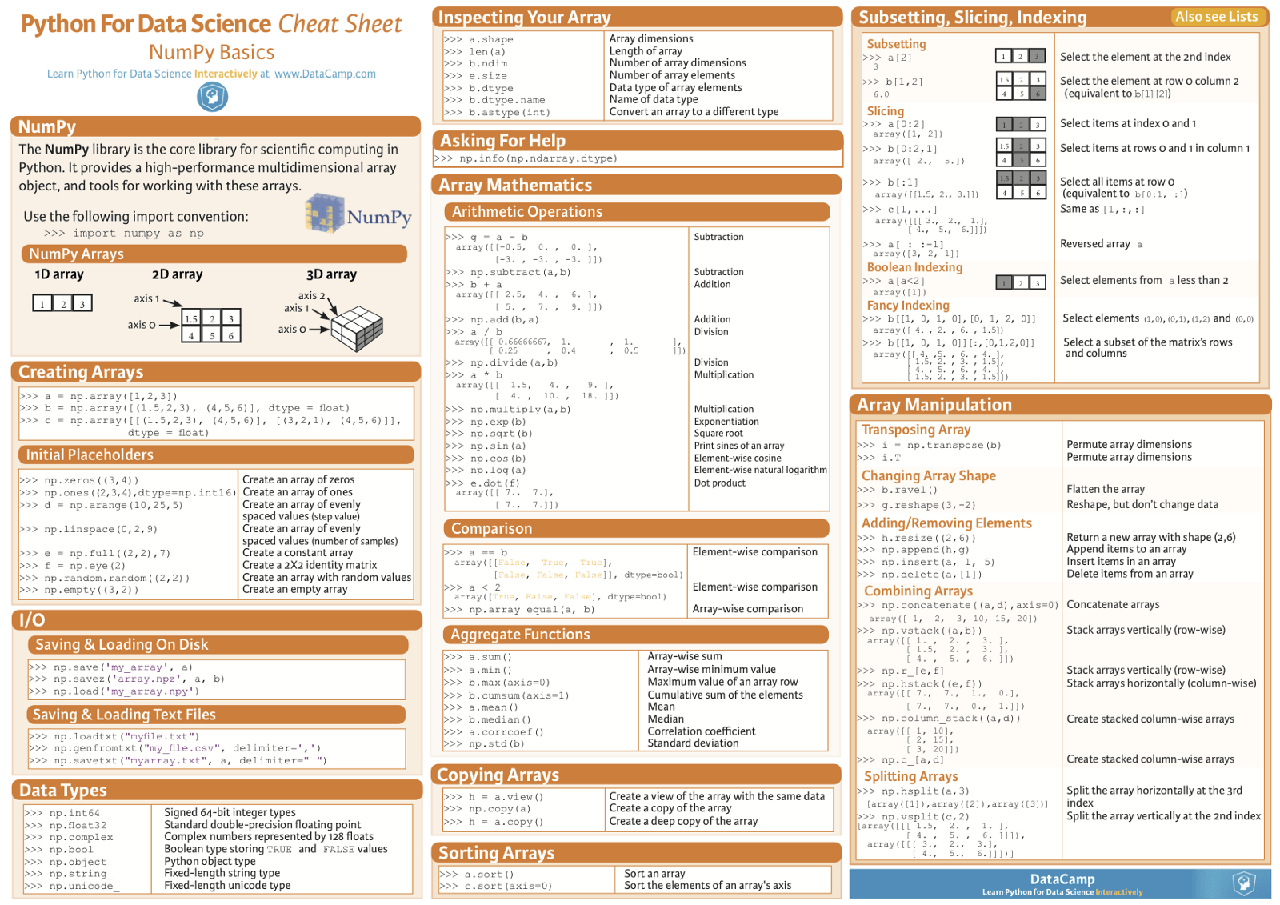 来源: https://www.dataquest.io/blog/numpy-cheat-sheet/