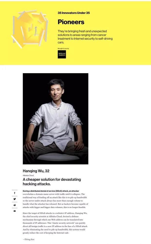 正因如此,TR35 的门槛极高。据统计,从 1999 年到 2016 年,共评选出 820 名 TR35,中国入选者仅 17 人。今年,阿里巴巴有两位科学家同时入选,创下中国互联网科技企业的先例。