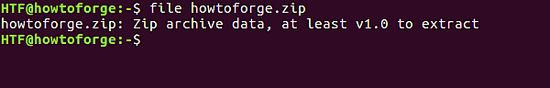输出的文件是 “howtoforge.zip”。要交叉验证它的类型,使用 file 命令:
