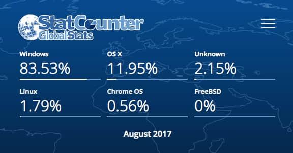 而据另外一家统计公司 StatCounter 的统计数据,Linux 的份额仅有 1% 多点,如果加上 ChromeOS 刚刚过了 2%。