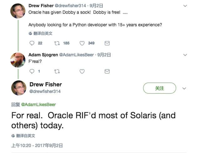 来自前 Sun 社区的消息表明,一月份的传闻(Oracle 裁员 450 人)成为了现实,上周五,Oracle 裁掉了 Solaris 和 SPARC 团队的核心员工,选择这个时候( 美国劳动节 前的周末)或许是希望这个消息被大众所忽略。