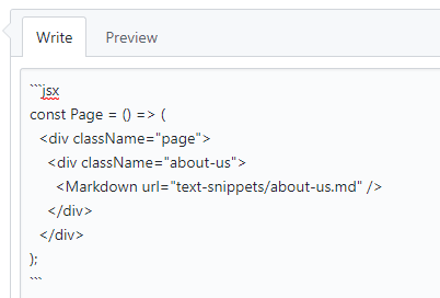 我是 React 的支持者,因此这里有一个 <Markdown> 插件的示例,给出一些 markdown 的路径,它就会被获取、解析,并以 HTML 的形式呈现。