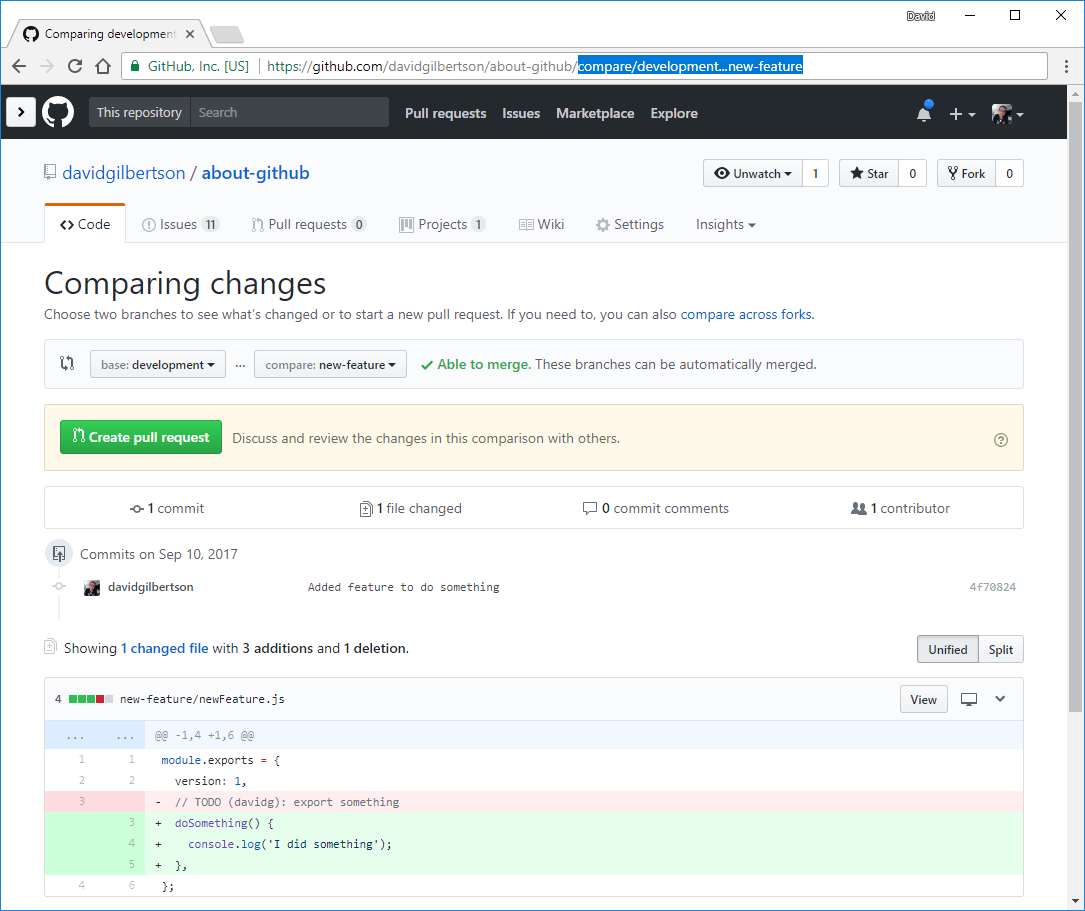 然而这就是与 master 分支的 diff,如果我要与 develoment 分支比较,我可以输入 /compare/development...my-branch。