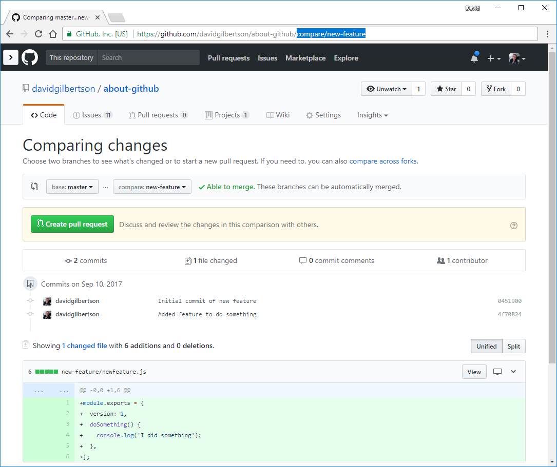 使用 UI 来浏览 GitHub 有着很好的体验。但有些时候最快到达你想去的地方的方法就是在地址栏输入。举个例子,如果我想要跳转到一个我正在工作的分支,然后查看与 master 分支的差异,我就可以在我的仓库名称的后边输入 /compare/branch-name 。