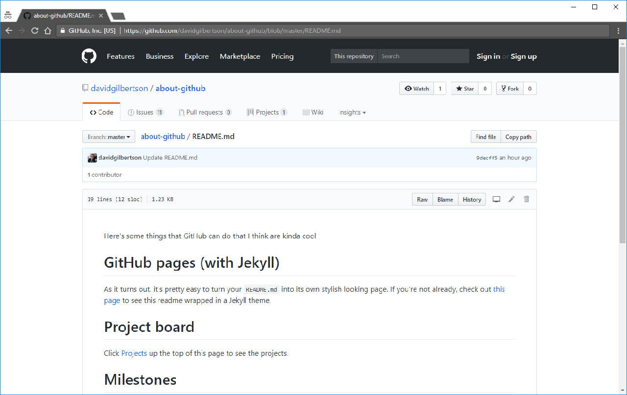 最简单的来说, GitHub 页面 + Jekyll 会将你的 README.md 呈现在一个漂亮的主题中。举个例子,看看我的 关于 github 中的 readme 页面: