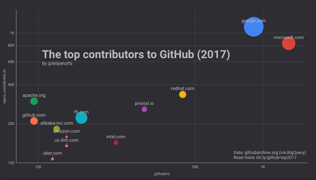 2017 年哪个公司对开源贡献最多?让我们用 GitHub 的数据分析下