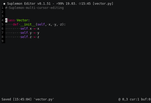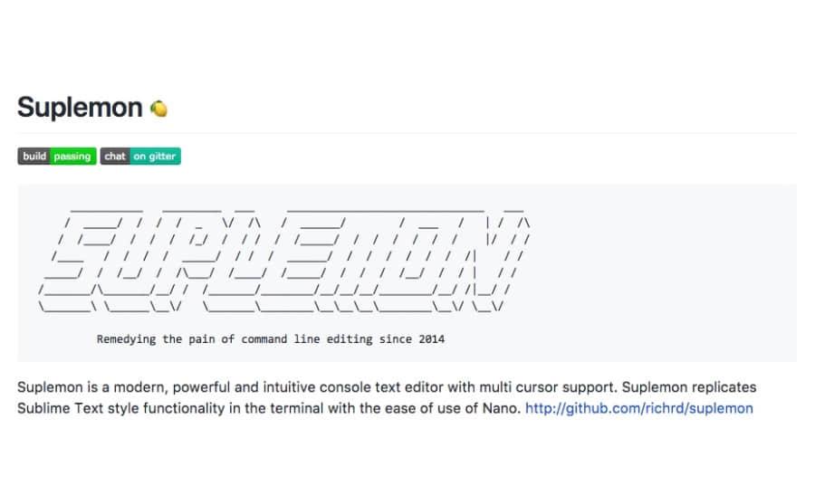 Suplemon 是一个 CLI 中的现代文本编辑器,它模拟 Sublime Text 的多光标行为和其它特性。它是轻量级的,非常易于使用,就像 Nano 一样。