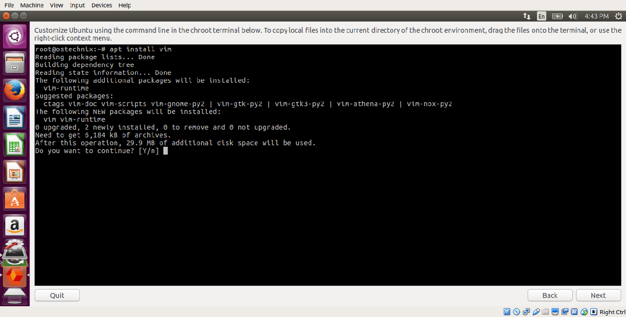 例如,我希望 vim 安装在我的 Live CD 中,所以现在就要安装它。